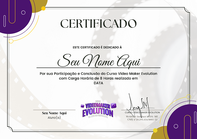 Sim, nosso curso conta com certificado gratuito. Após concluir o Curso Vídeomaker Evolution você vai ter acesso a este lindo certificado que atesta sua capacitação profissional.